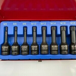 Heavy Duty 8pcs 1/2” Drive Spline XZN Impact Socket Bit Set M5-M18 CR-MO 78MM