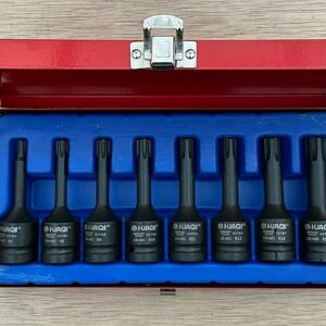 HUAQI 1/2” Drive Heavy Duty 8pcs Ribe Impact Socket Bit Set R6-R14 CR-MO
