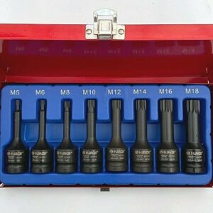 HUAQI 8pcs Spline XZN Impact Socket Bit Set 1/2” Drive M5-M18 CR-MO 78MM