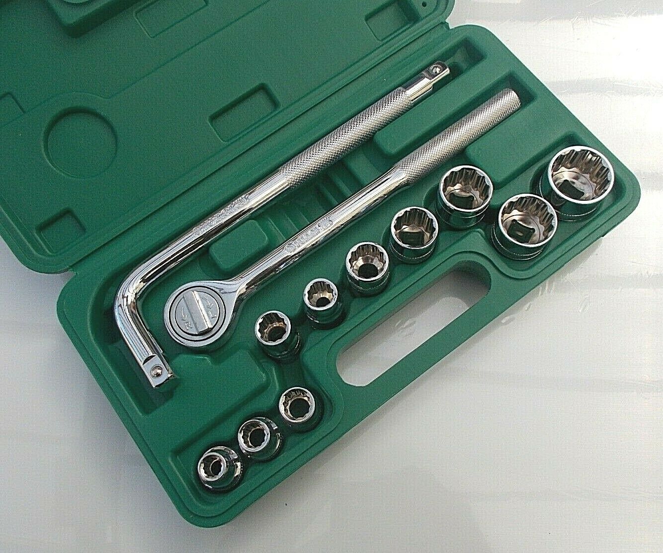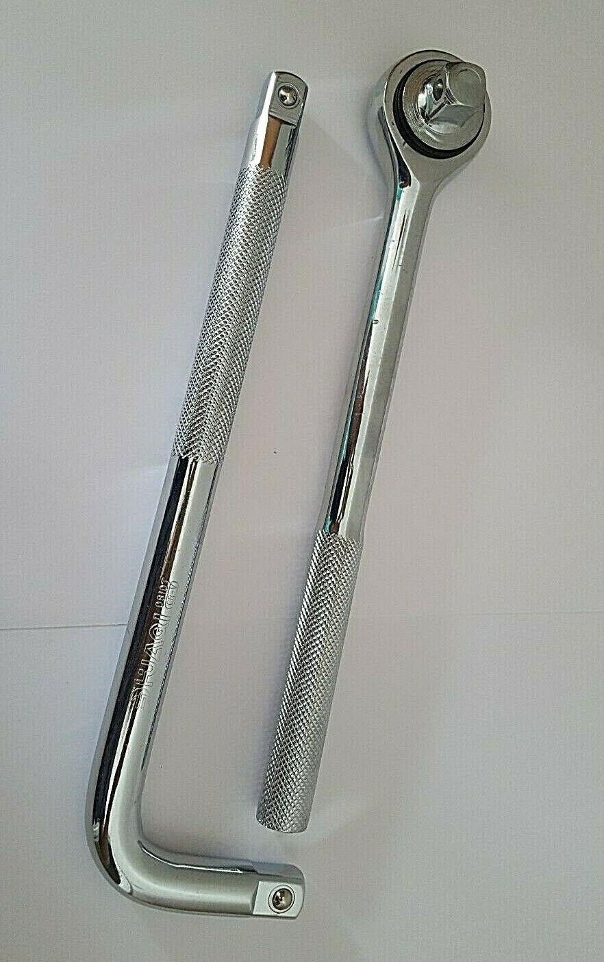 13PC 1/2″ DRIVE RATCHET WRENCH & L EXTENSION HANDLE SET METRIC SOCKETS 8-27MM