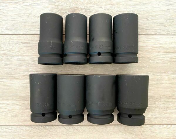 This is a brand-new quality Huaqi deep impact 1in socket set. This set includes size 22, 24, 27, 30, 32, 34, 38, 41mm socketComes in its own self-contained case for easy storage. I will be dispatching a brand-new one, not the one from the photo.