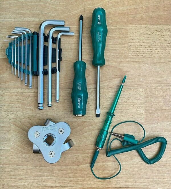 - 11x Combination wrenches: 8, 9, 10, 11, 12, 13, 14, 16, 17, 18, 19