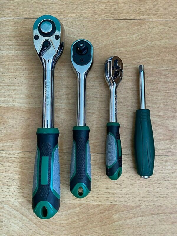 - 3x Heavy Duty, Quick release 72T Ratchet handles: 1/2″, 3/8″, 1/4″