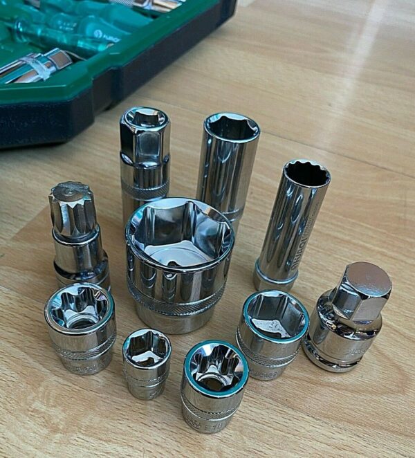This substantial socket set includes a selection of high quality spanners, ratchets, automotive repair tools and a host of different sockets including common and more specialised sizes.
