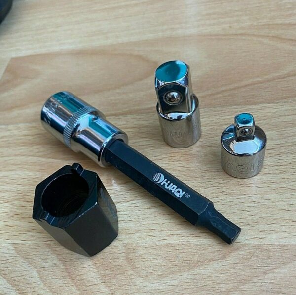 - 1x Special 2 pin slotted nut socket