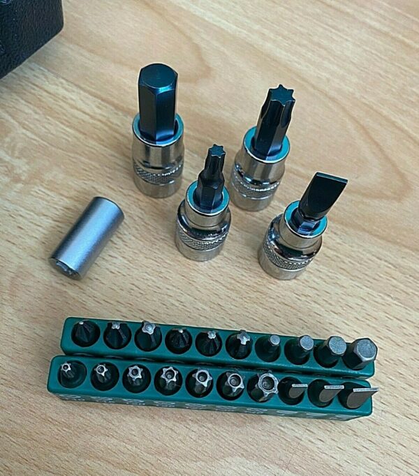 - 10x 1/4″ Hex sockets: 4, 5, 6, 7, 8, 9, 10, 11, 12, 13mm