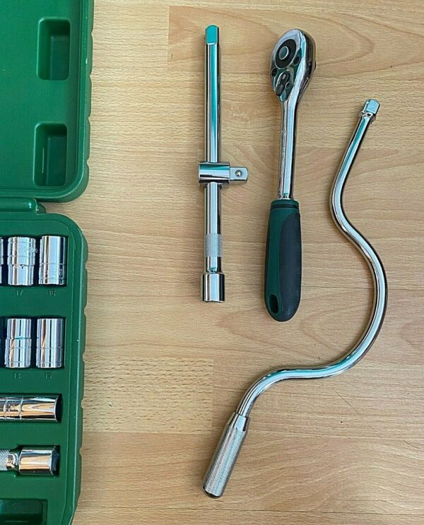 - 6 x 12 Point 1/2″ Drive Sockets: 10, 12, 14, 15, 17, 19mm