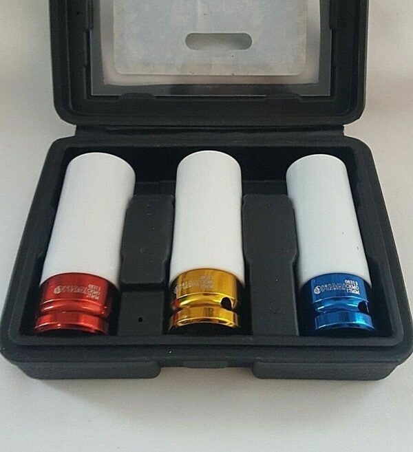 HUAQI 3pc Alloy Wheel Nut Thin Wall DEEP Impact Socket Set 1/2″ Drive 17 19 21mm