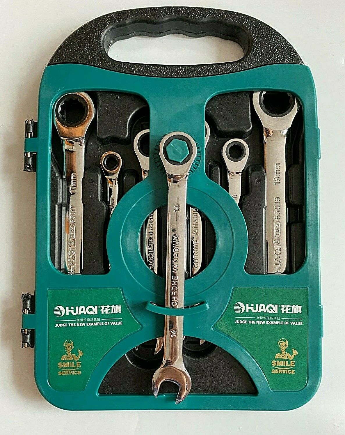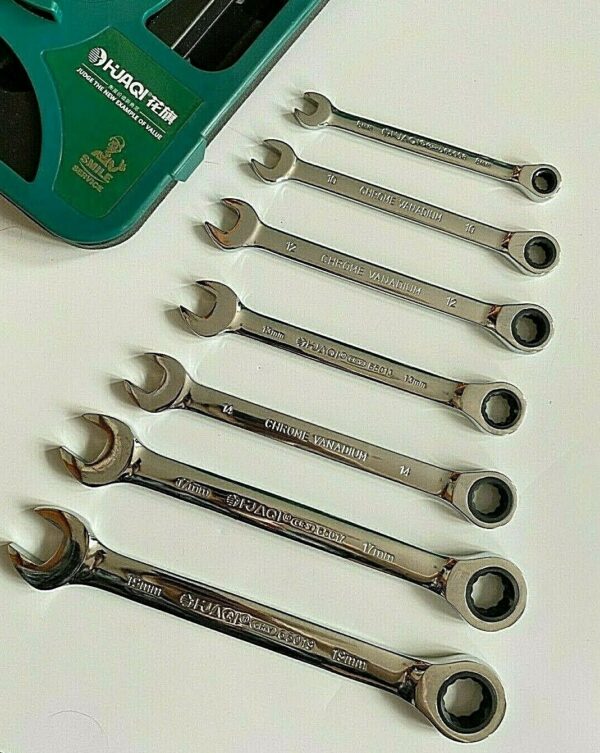 HUAQI 7pc Combination Ratchet Wrench Spanner Set Heavy Duty Metric 8-19mm