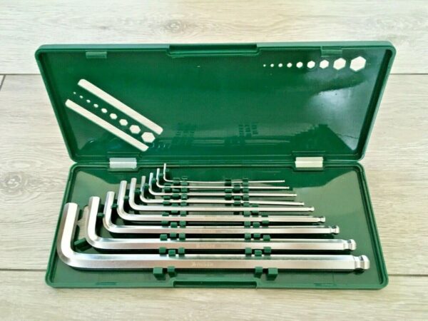 New quality Huaqi set of 9 Allen keys with metric ball point it comes in all different size. It also has a self-contained case box for easy storage. I will be dispatching a brand new one, not the one from the photo.
