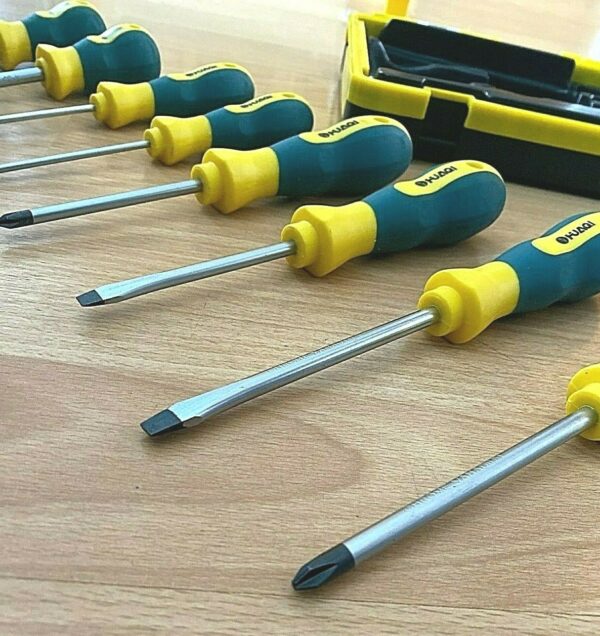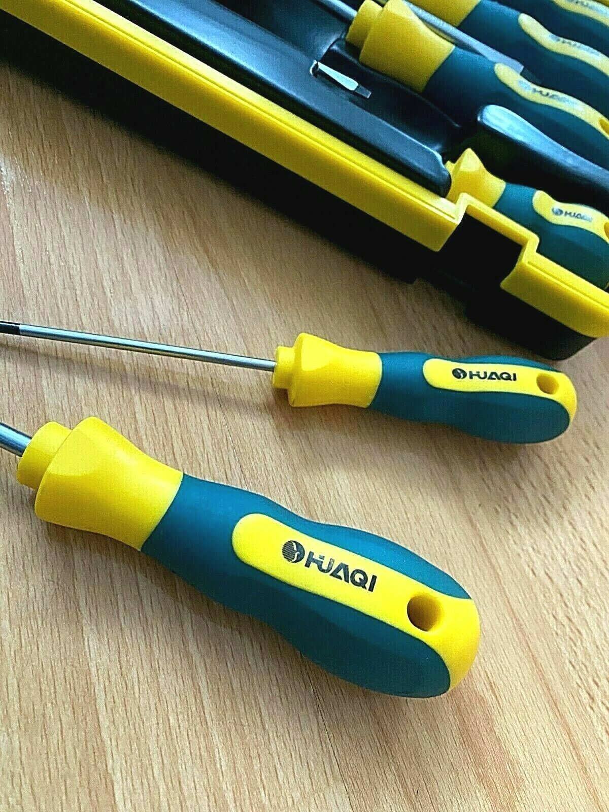 HUAQI 9PC Heavy Duty Magnetic Tip Screwdriver Set Soft Grip With Storage Case UK