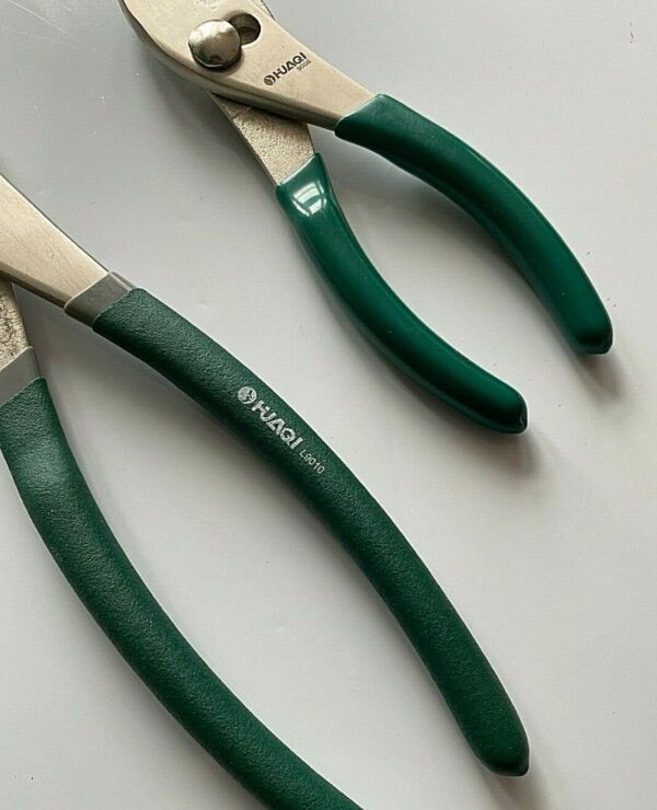 With serrated parallel jaws for gripping flat workpieces and curved jaw for gripping nuts, pipes etc